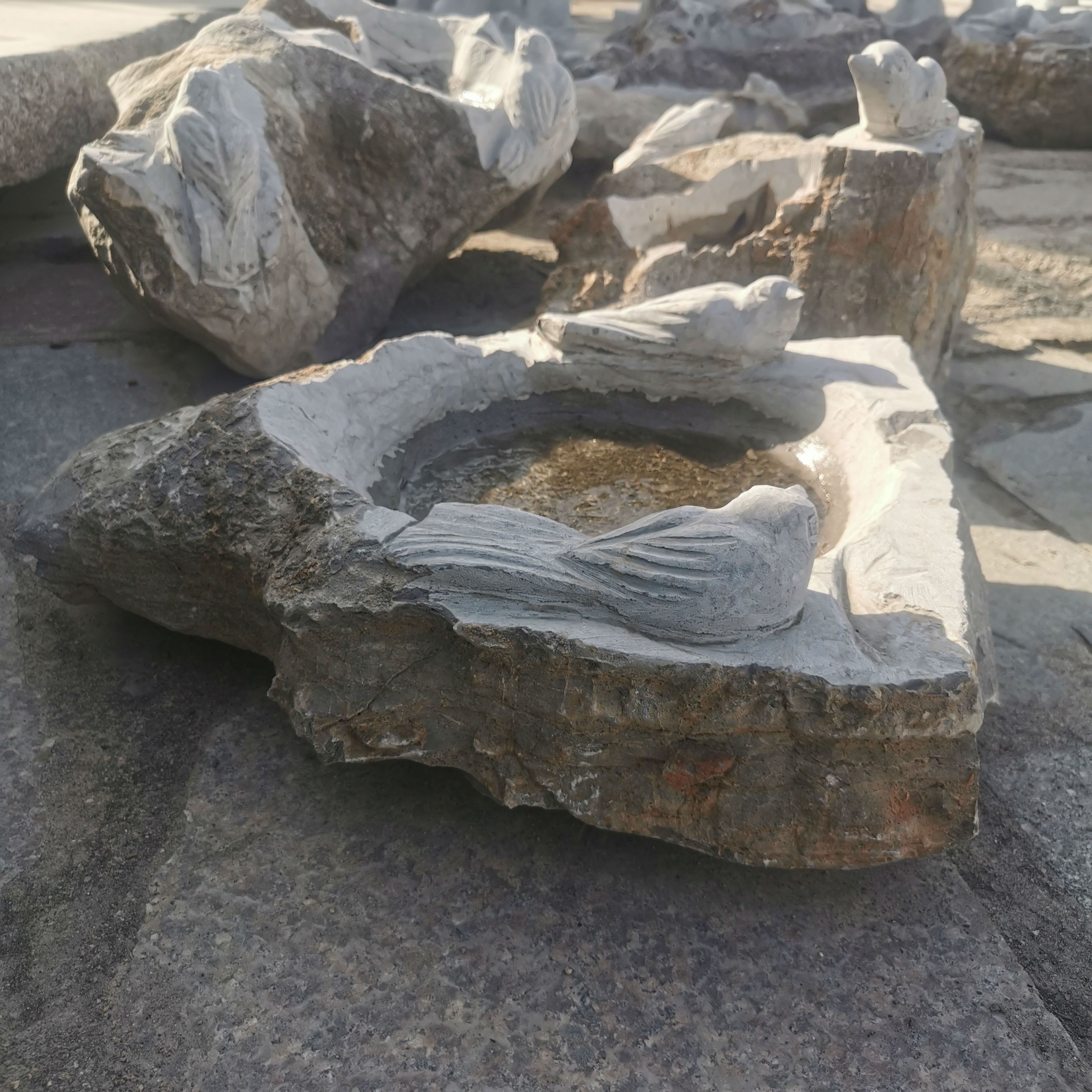 Natural stone carved bird basin birdbath for home and outdoor art stone bird bath